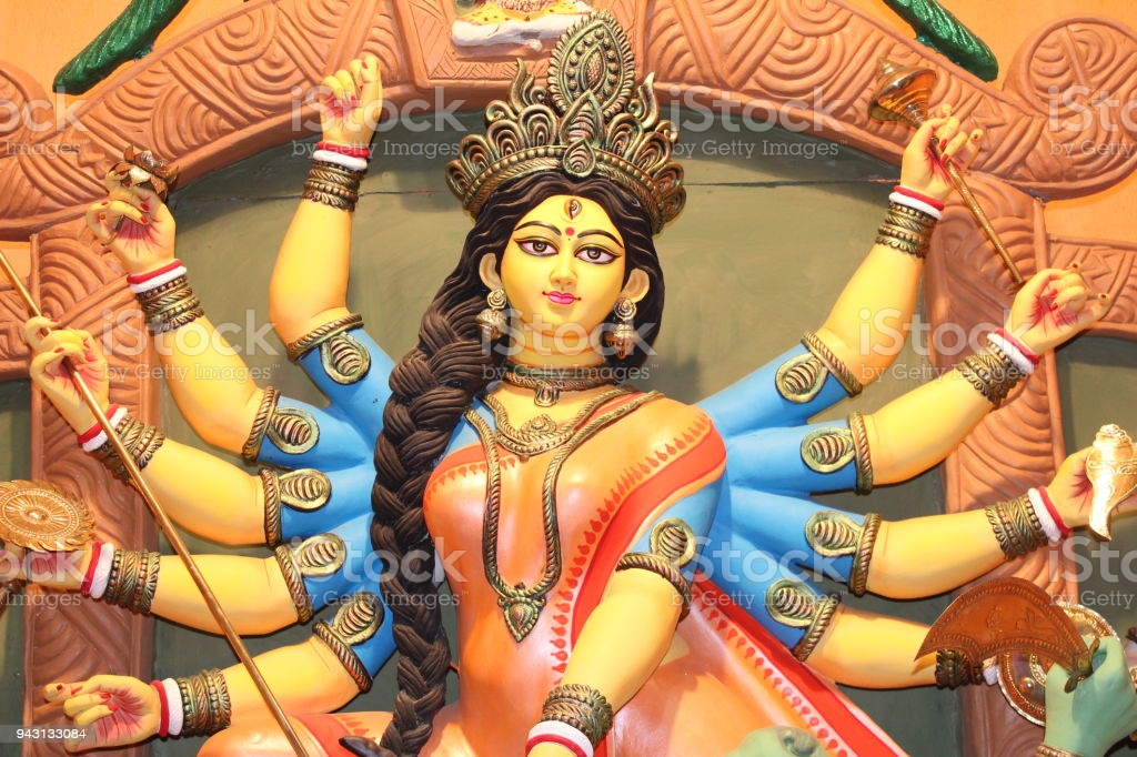 देवी दुर्गा की मूर्ति में उनके साथ दस हाथ और उनका वाहन सिंह होता है। असुरों और पापियों का नाश करने के लिए माँ दुर्गा दस तरह के हथियार रखती हैं। देवी दुर्गा के पास लक्ष्मी, सरस्वती , कार्तिकेय और गणेश जी की मूर्तियाँ भी स्थापित की जाती हैं। दुर्गा पूजा के उत्सव को बुराई पर अच्छाई की जीत के रूप में मनाया जाता है।
